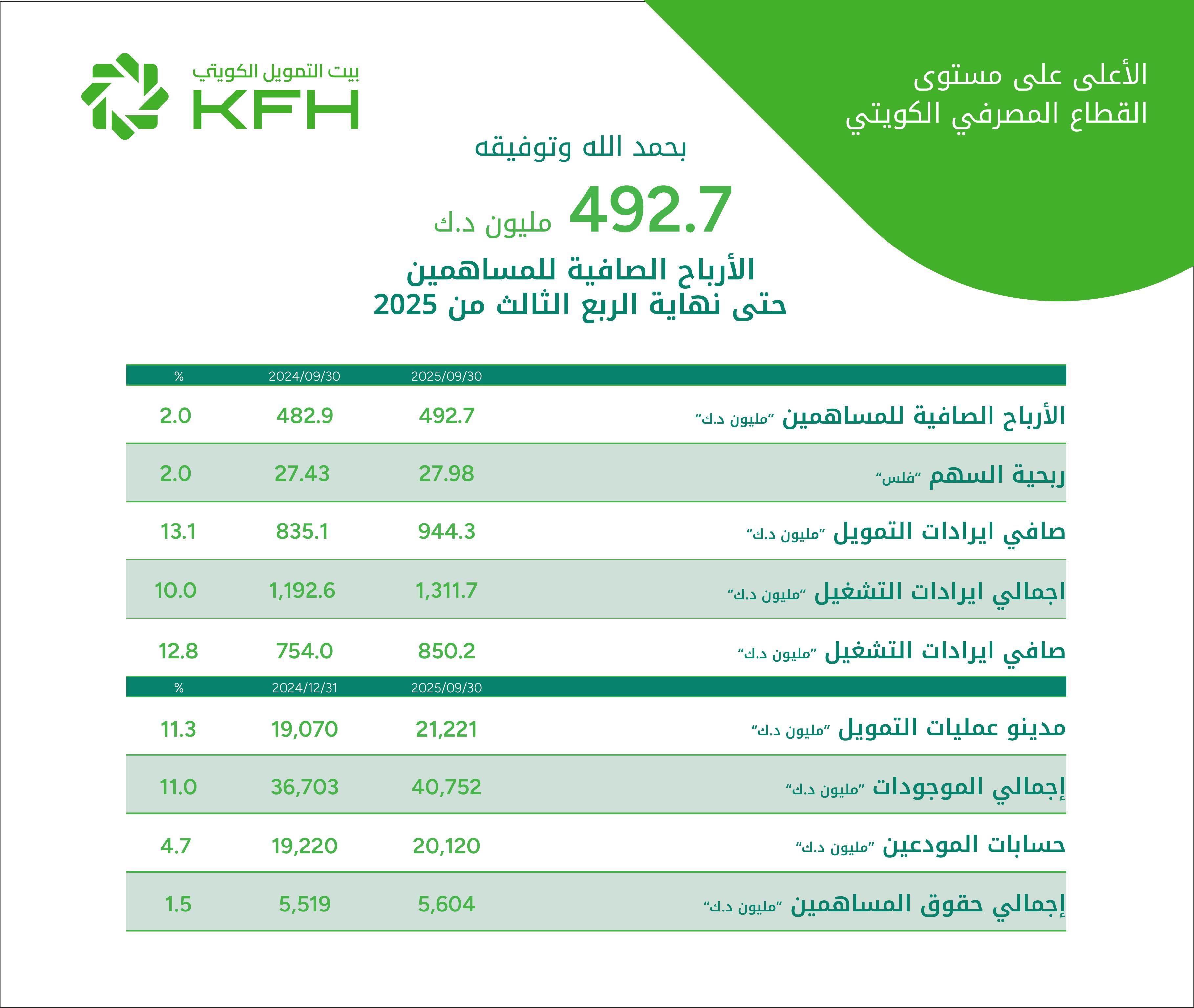 النتائج المالية لنهاية الربع الثالث من العام 2025