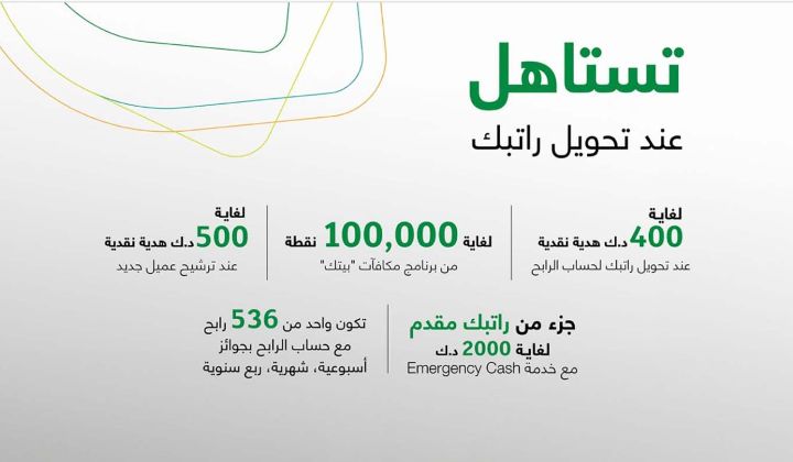 يواصل بيت التمويل الكويتي "بيتك" حملة "تستاهل" التي تشجع العملاء الكويتيين لتحويل رواتبهم للاستفادة من مزايا ومكافآت وعروض تنافسية، حيث تتميز الحملة بتقديم هدايا نقديه للعملاء تصل لغايه 400 دينار عند تحويل الراتب ...